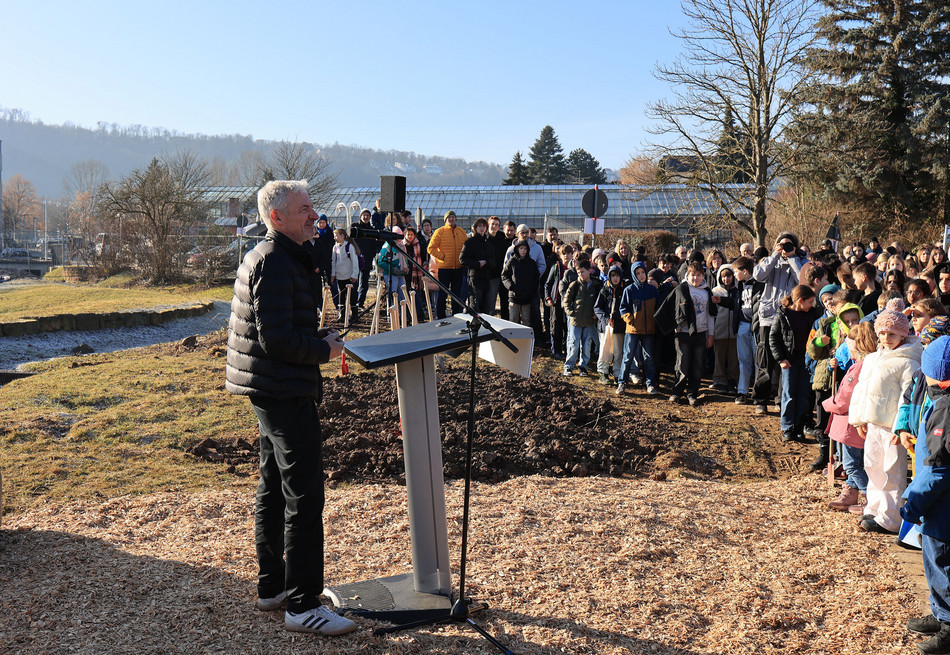 Mit dem Spatenstich am 21. Januar fiel der Startschuss zum Bau der Mensa im Schulzentrum Gerlingen. Nach einleitenden Worten von Gerlingens Bürgermeister Dirk Oestringer gab Tobias Wulf Einblicke in die Planung, die einen charakteristischen Solitär in Holzbauweise vorsieht. Der Neubau entsteht in Sichtweite zur vielfach ausgezeichneten Realschule, die nach unseren Plänen saniert und erweitert wurde.