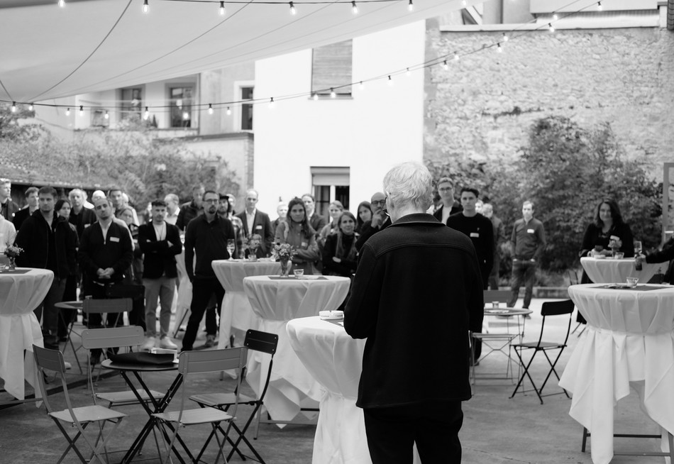 Buoyed by competition successes, our Basel office has developed into a high-performing unit with around 30 employees. “6 years, 6 projects, 6 cantons” was the motto of the first Basel studio party, which took place on September 25, 2025. The evening began with drinks and appetizers before Tobias Wulf welcomed over 100 guests, including many building contractors and specialist planners. The focus then shifted to networking, accompanied by delicious canapés and sounds from a DJ.