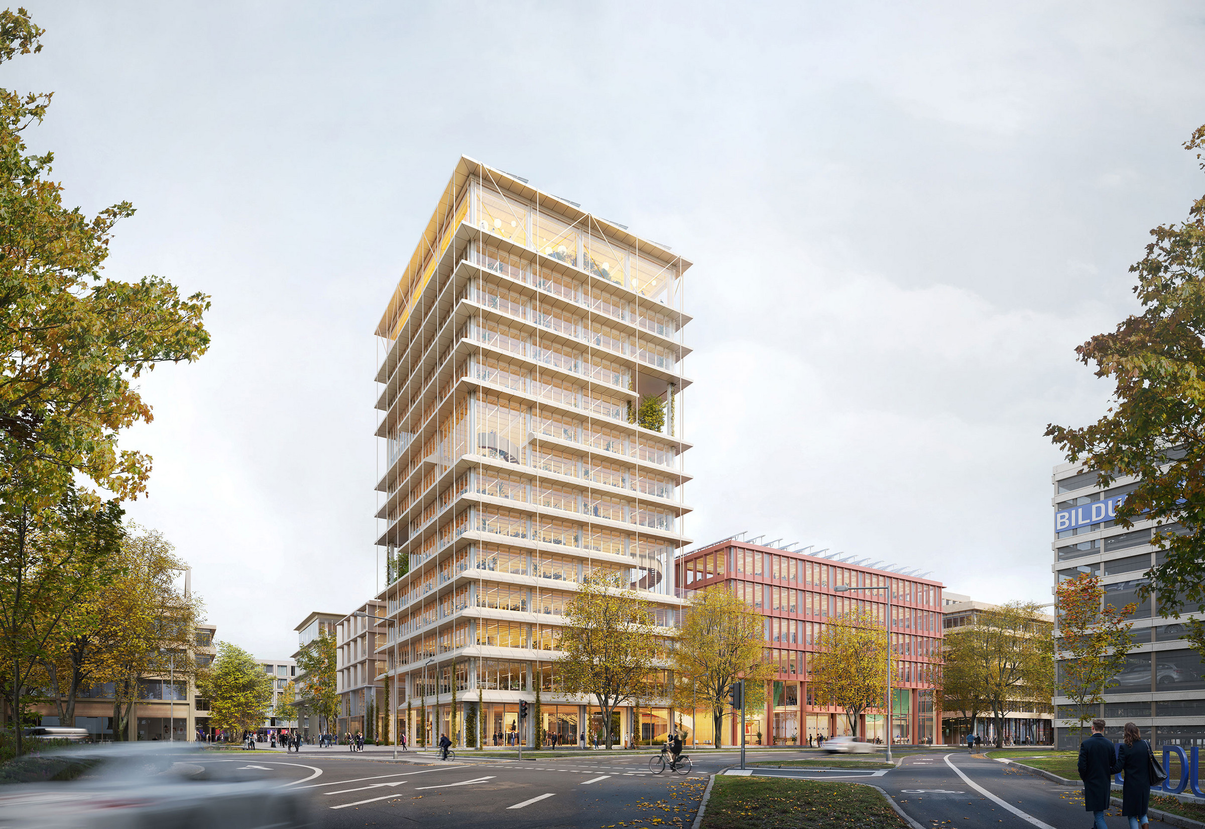 Der im Herzen Heilbronns gelegene Bildungscampus bietet ein breites Spektrum an Bildungs- und Wissenschaftseinrichtungen mit Angeboten vom klassischen Hochschulstudium über duale Studiengänge und berufliche Weiterbildung bis hin zu Gründer- und Forschungsprogrammen. Das Baufeld F bildet den markanten Auftakt des Bildungscampus mit einem Ensemble aus drei Gebäudeteilen, verbunden durch eine gemeinsame öffentliche Sockelzone mit Café, Bäckerei, Ausstellungs- und Foyerflächen, die Innen- und Außenräume verknüpft und eine enge Verzahnung mit der Umgebung schafft. Ein Hochpunkt bildet ein markantes Wahrzeichen, das die Skyline des Campus prägen wird.